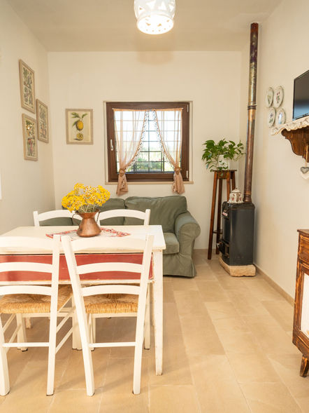 Questa tipica dimora di campagna, ricavata all’interno di una vecchia lamia, è l’ideale per due/tre persone, offrendo un ambiente intimo e accogliente.