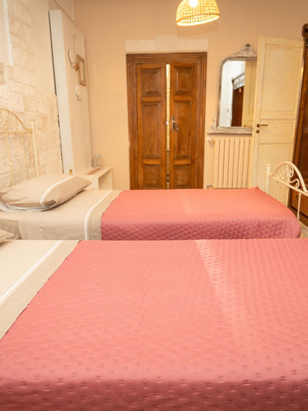 La camera è arredata con un comodo letto matrimoniale, ma è possibile richiedere due letti singoli, a seconda delle preferenze. Un ampio armadio è disponibile per riporre i vestiti, mentre il bagno privato è dotato di servizi moderni e una doccia spaziosa.